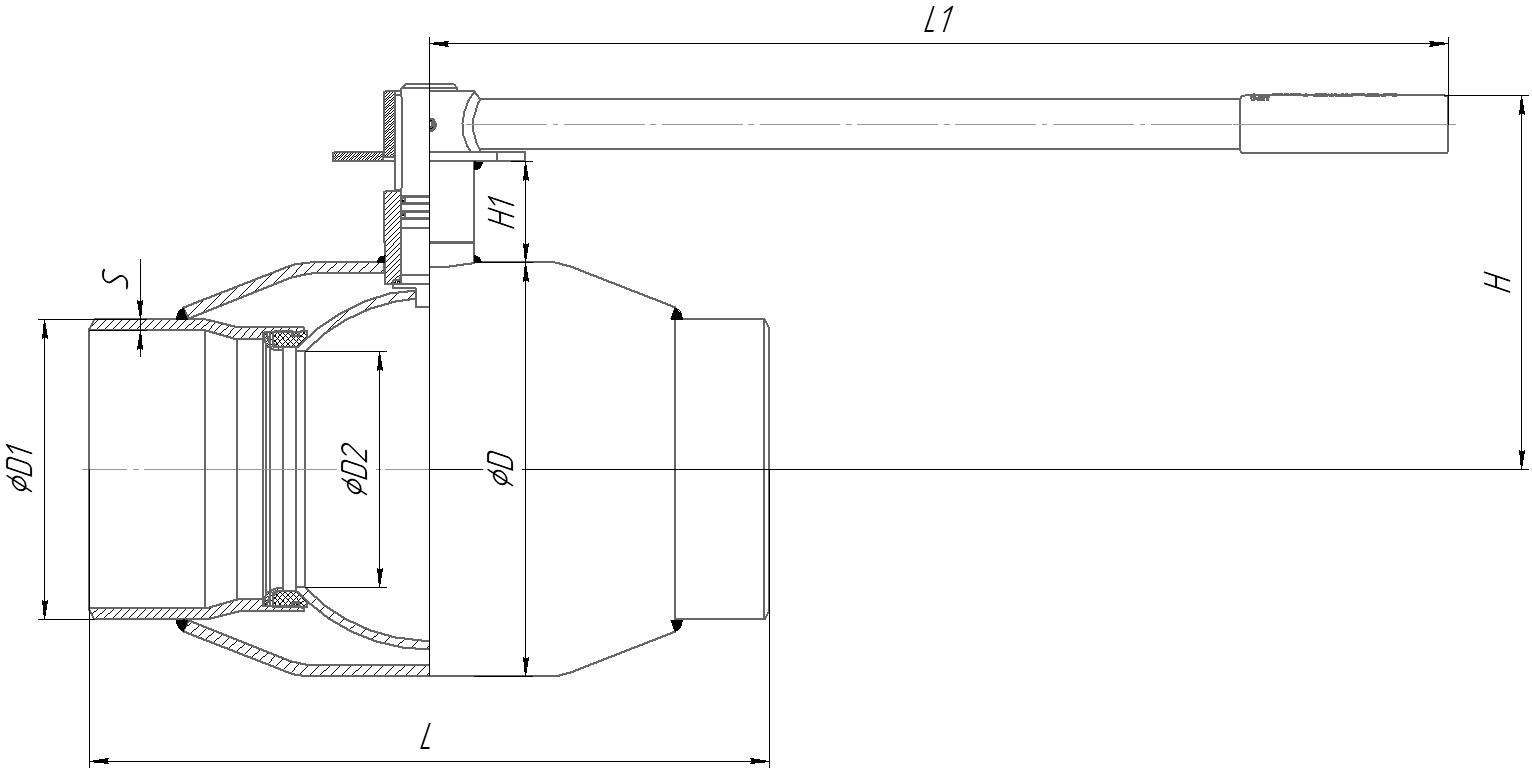 | Артикул | DN | PN | L | L1 | H | H1 | D | D1 | D2 | S | Вес | |
